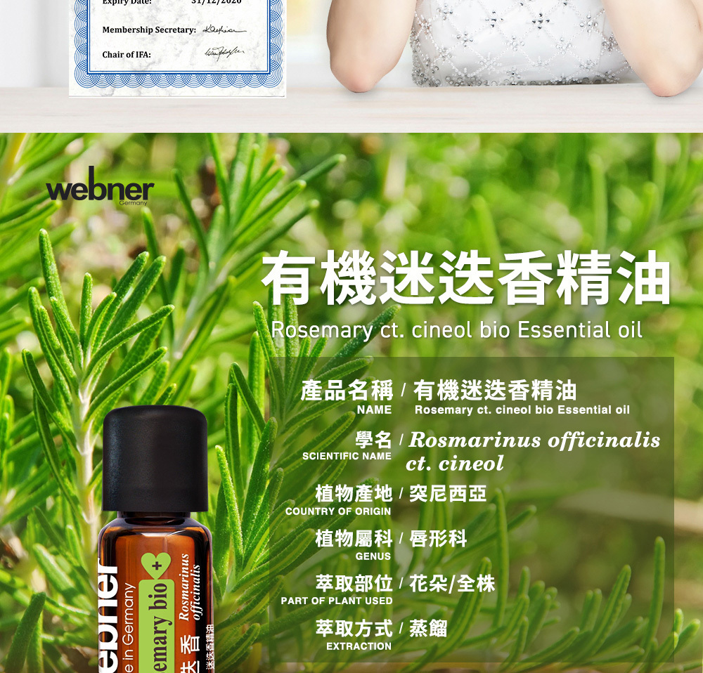 成分:有機桉油醇迷迭香精油