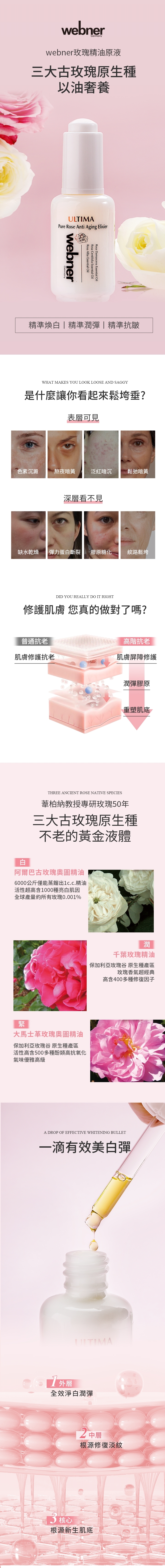 成分:保加利亞大馬士革玫瑰精油,千葉玫瑰精油, 白玫瑰精油,玫瑰果油, 維生素E,橄欖油萃取角鯊烷等如瓶身所示