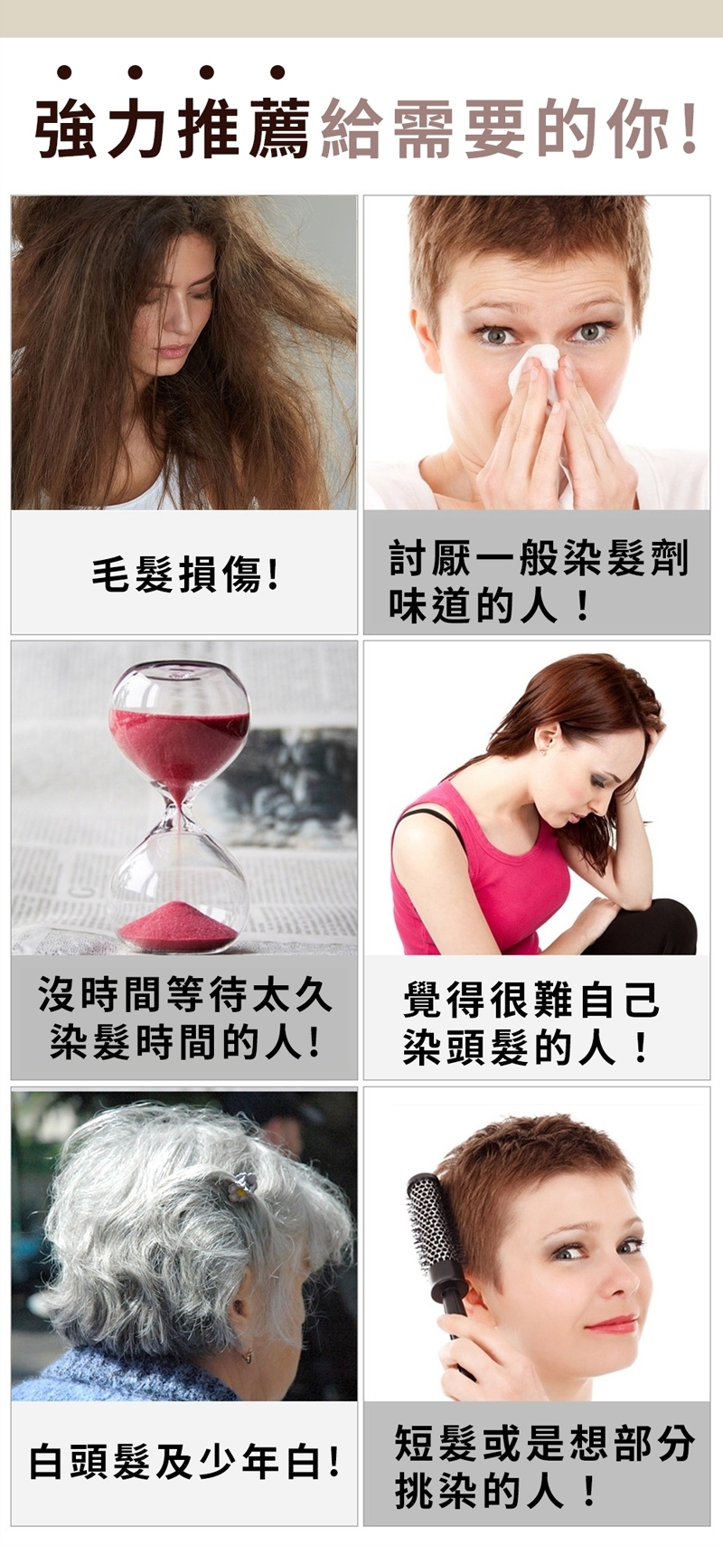 下列情況者應避免使用:(一) 因使用染髮劑(不限本產品),曾引發過敏反應或身體不適等症狀者。