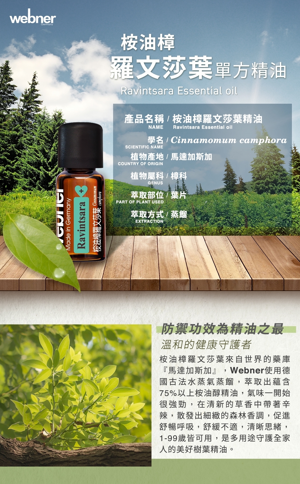 webner 葦柏納|桉油樟羅文莎葉單方精油 10ml