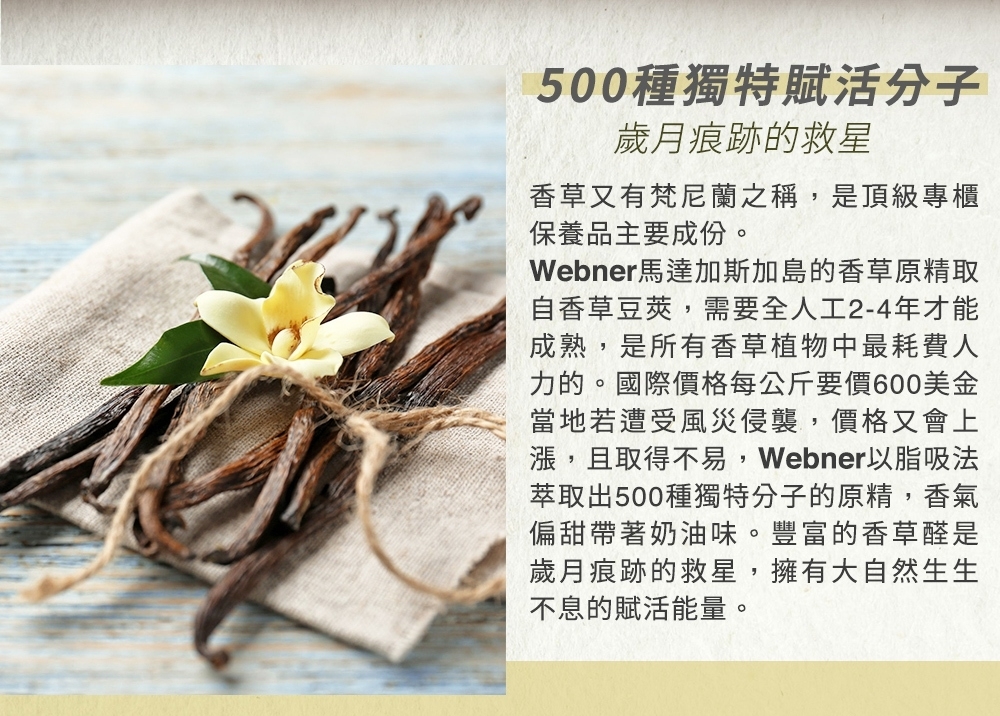 屬於香草蘭植物,含有豐富的香草醛,味道香醇帶有清新可口的感覺